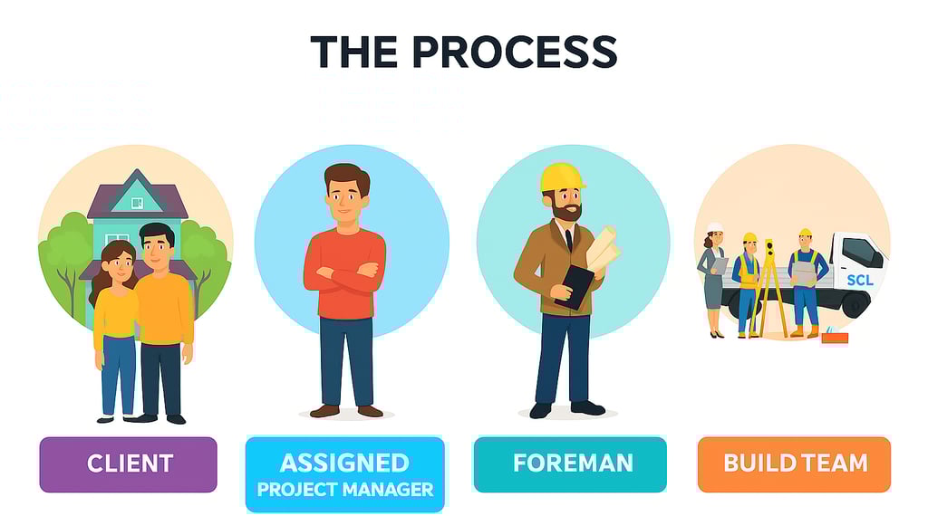 At Stellantis Construction, we’ve developed a streamlined six-stage framework that ensures every project is delivered with precision and transparency. From initial consultation to final handover, each phase is designed to give you full visibility and confidence in the process. Your dedicated project manager will guide you throughout, ensuring that every detail meets our exacting standards.
